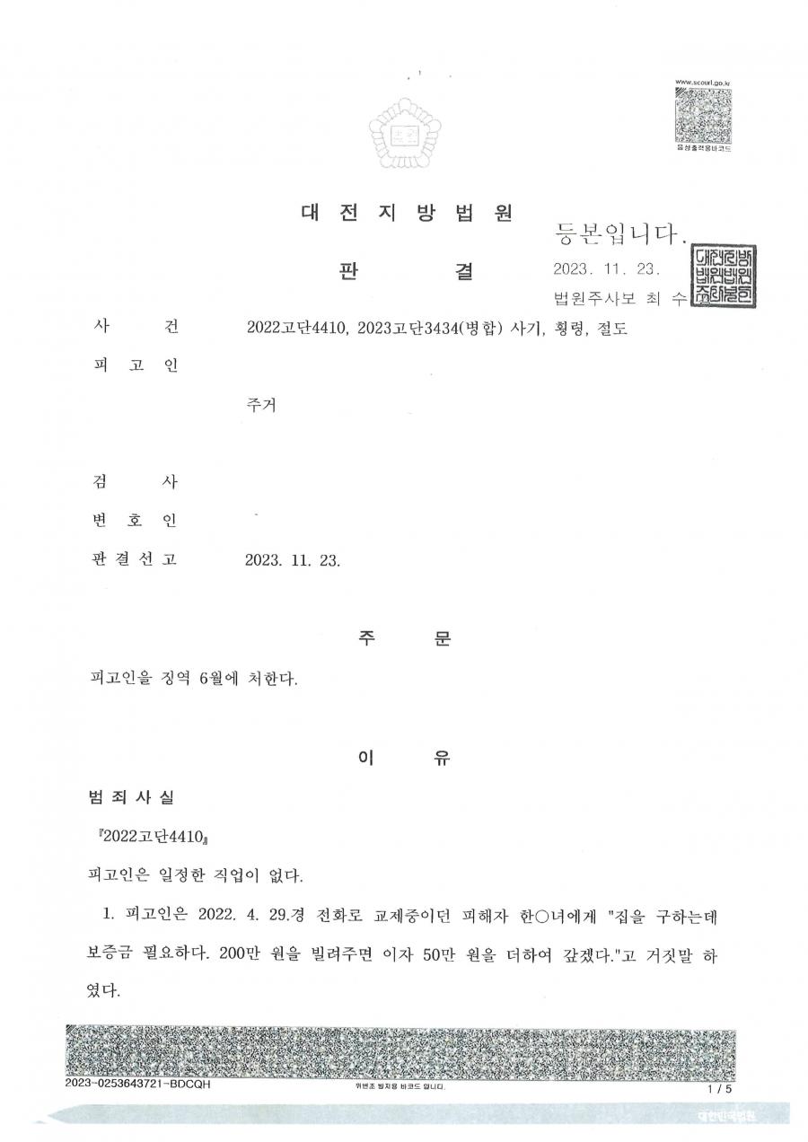 - 사건 : 대전지방법원 2022고단4410호 - 판결요지 : 연인관계였던 피고인은 피해자에게 돈을 빌리더라도 갚을 의사와 능력이 없는 상태에서 수차례 돈을 대여하고, 피해자의 자동차를 전당포에 맡겨 돈을 빌렸던 사실 등을 사기 혐의로 고소하였고, 피고인에 대하여 징역형의 선고가 나온 사건.